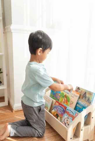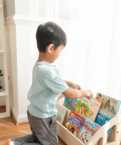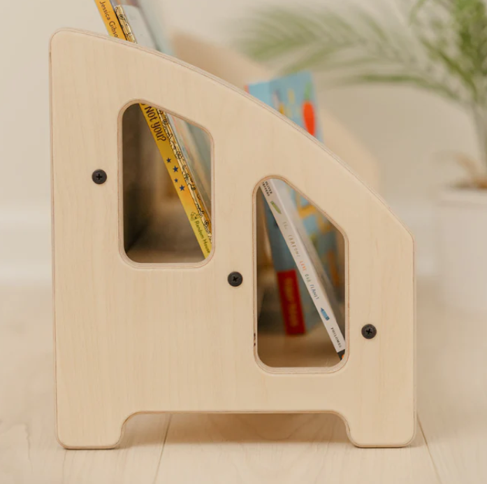 The front-facing Bookshelf is the perfect addition to any nursery, playroom, or next to the couch for story time! The Montessori floor bookshelf has 2 tiers to hold several forward facing books.