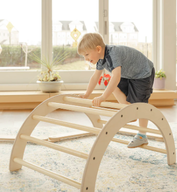 The Montessori Climbing Arch for toddlers is a versatile and engaging structure for your little ones to crawl and climb all over! The wooden Climbing Arch promotes free exploration, imaginative play, and gross motor development.