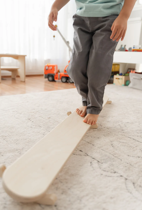 The Wobble Beam tilts side to side for a unique balancing experience. Walk across the challenging beam one kiddo at a time or rock back and forth with multiple kiddos together! Ideal for open-ended play and improving little one’s gross motor skills including balance, coordination, and concentration.